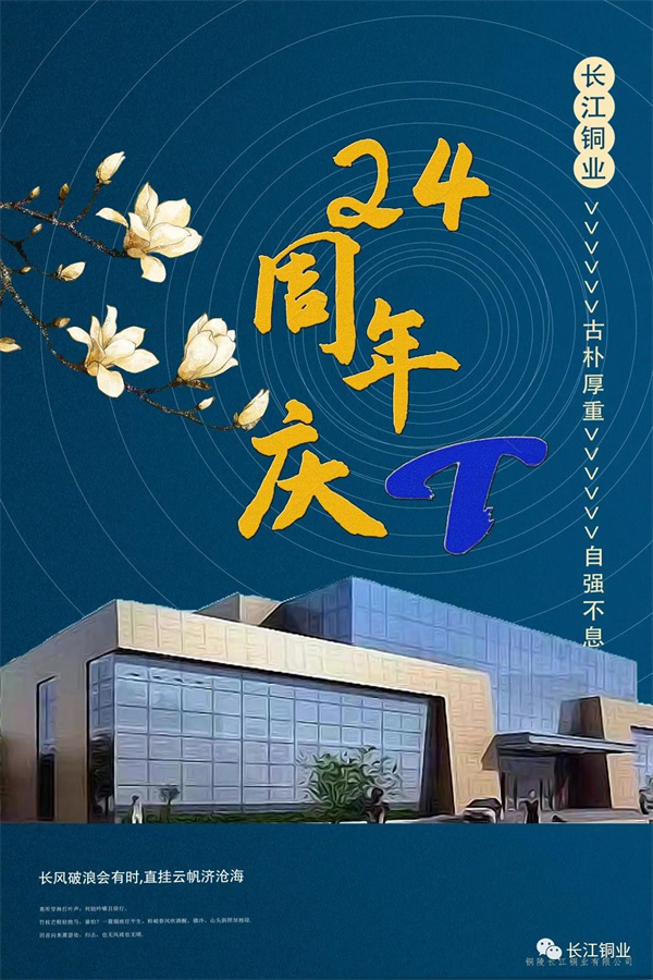 24載春秋,韶華匆匆;24載耕耘,碩果累累。二十四年來,銅陵長江銅業(yè)有限公司秉承著古樸厚重、自強(qiáng)不息”的創(chuàng)業(yè)理念,堅守著“發(fā)展創(chuàng)新、誠信經(jīng)營”的經(jīng)商初心,帶領(lǐng)著長銅人不斷銳進(jìn),創(chuàng)造出獨屬于長銅的時代輝煌。
